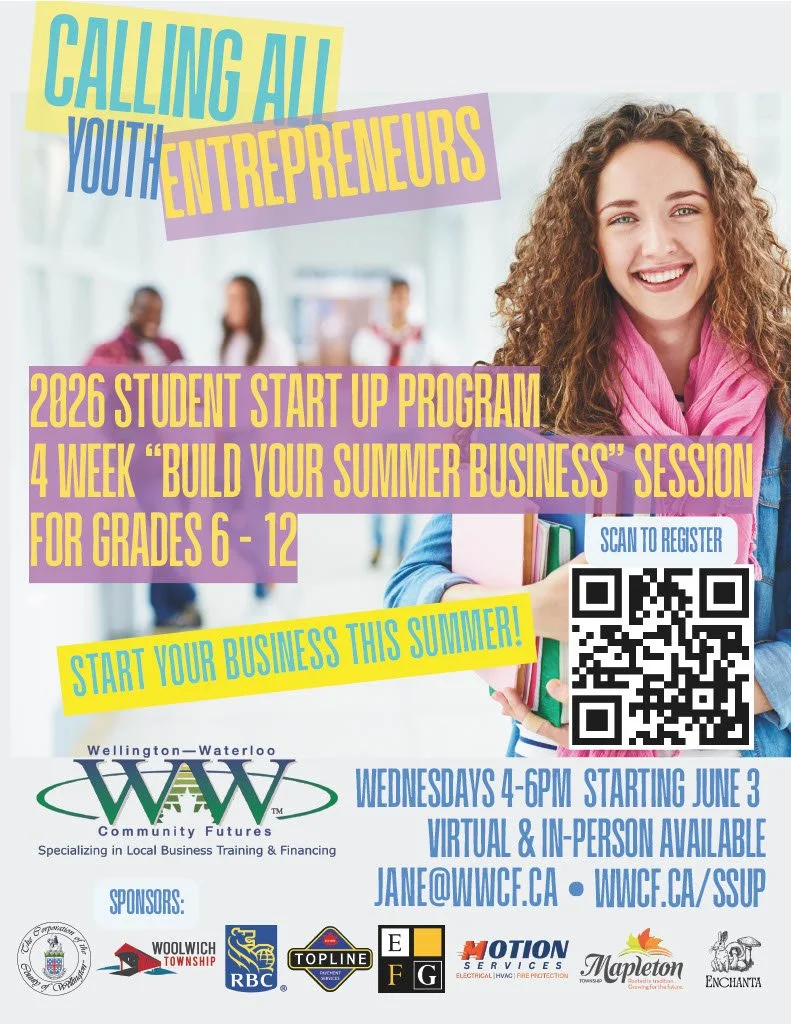 SSUP is proudly supported by the Wellington-Waterloo Community Futures Development Corporation alongside generous contributions from local businesses and organizations. This community-driven model ensures that youth have access to resources, mentorship, and financial support to help bring their business ideas to life.